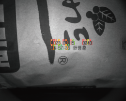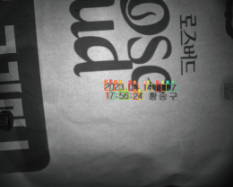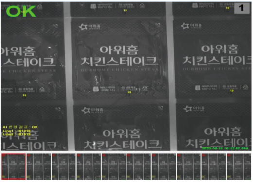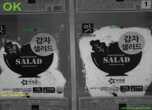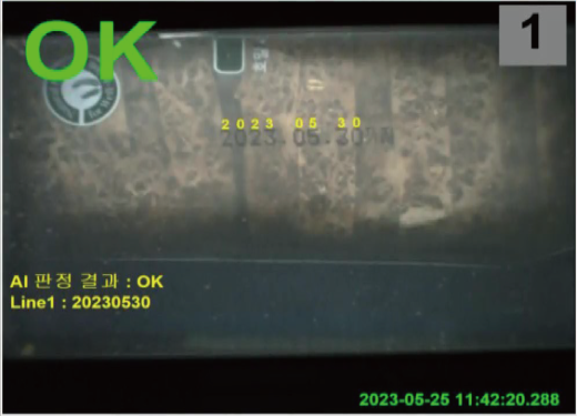 AI Vision System은 포장지의 로고와 날인이 겹쳐지더라도 문제없이 날인을 인식합니다.